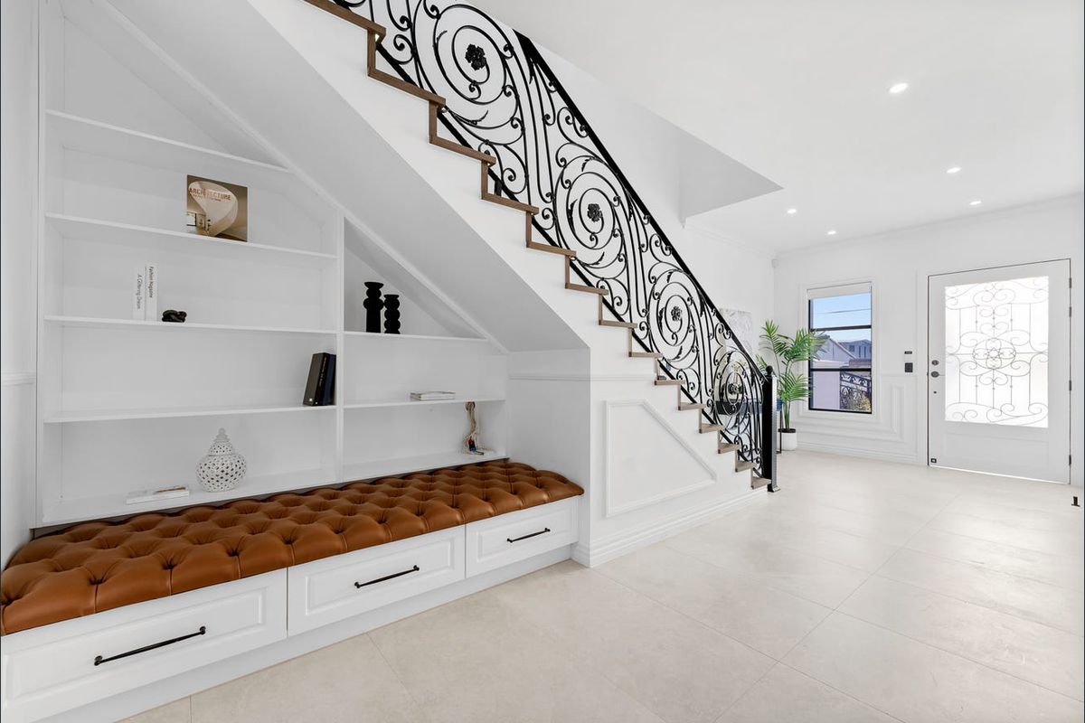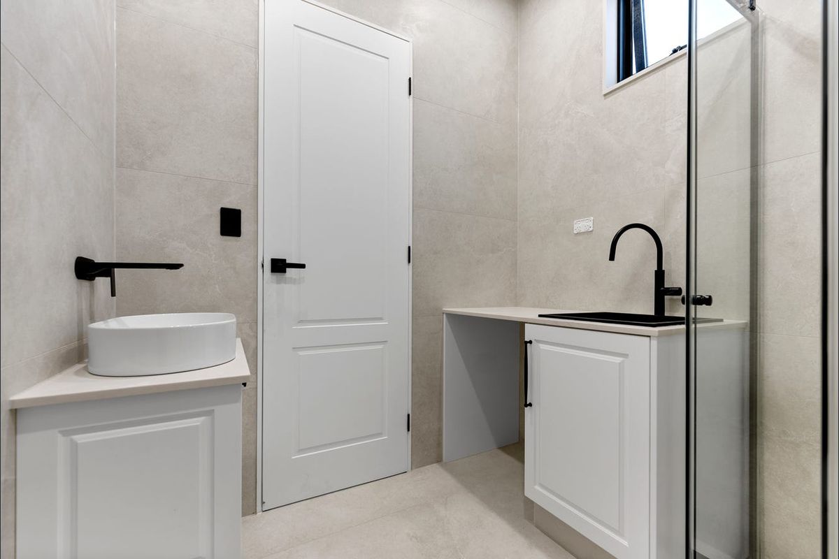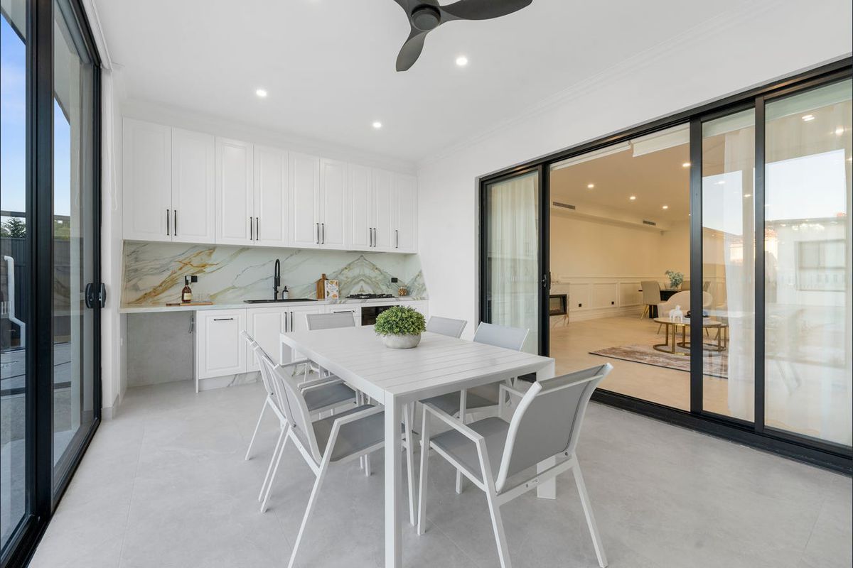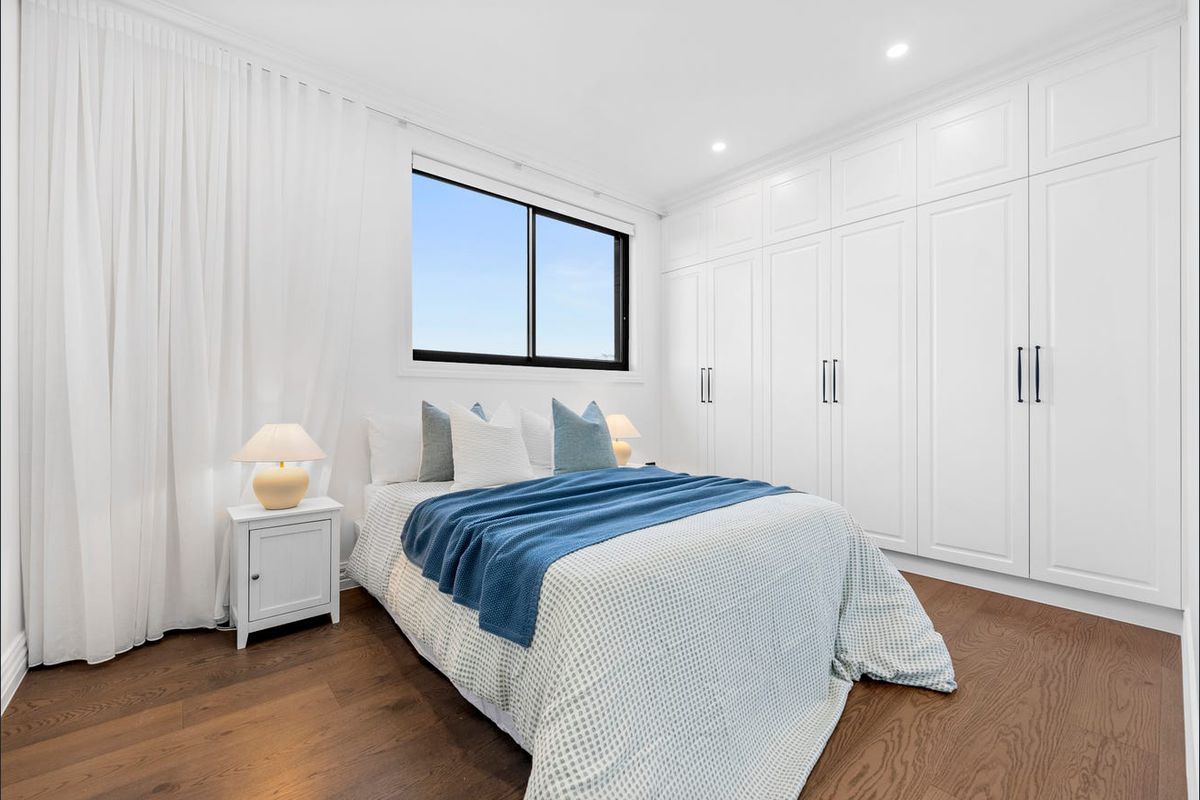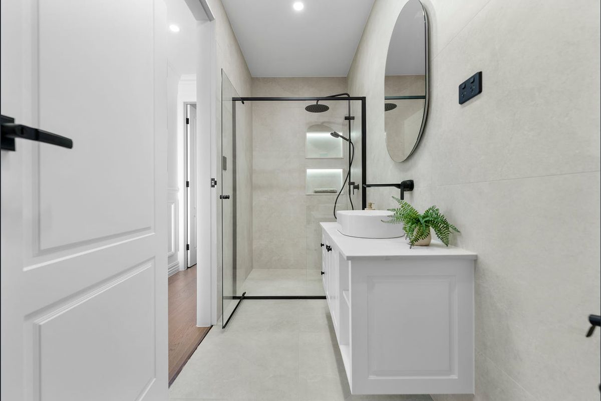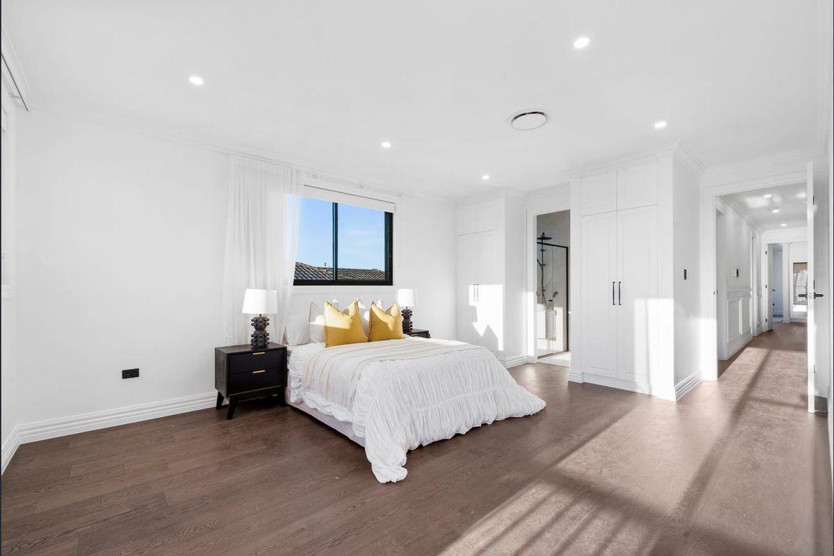 Enjoy a flexible layout with a downstairs bedroom and bathroom, plus four oversized bedrooms upstairsincluding two master suites with ensuites and custom wardrobes. The gourmet kitchen includes Calacatta stone benchtops, a walk-in pantry, and top-tier AEG appliances.