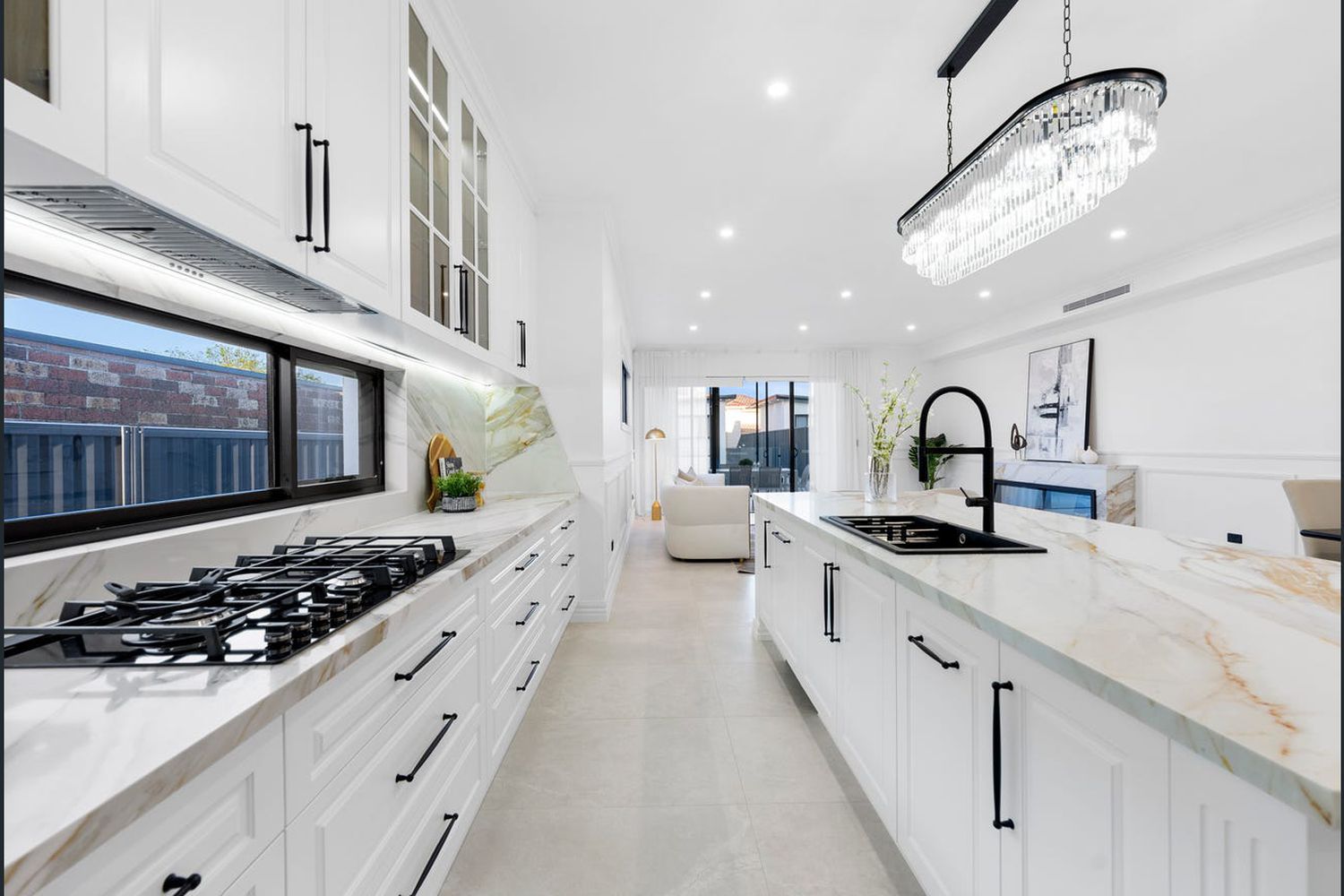 - Two gas kitchens with Calacatta stone benchtops
