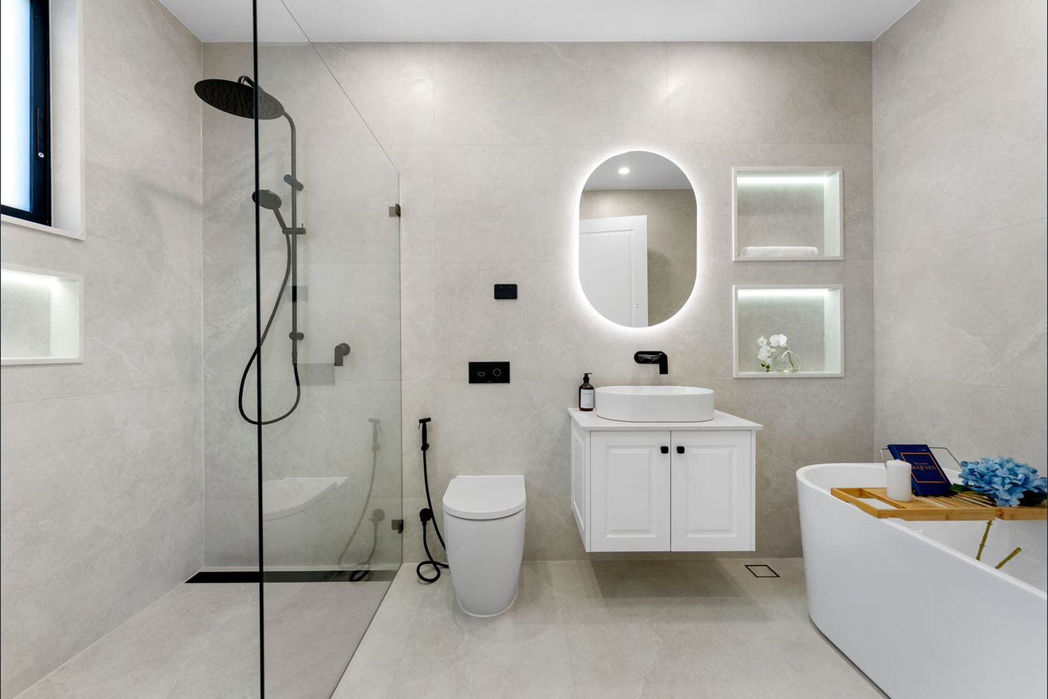 - Four stylish bathrooms in the main residence