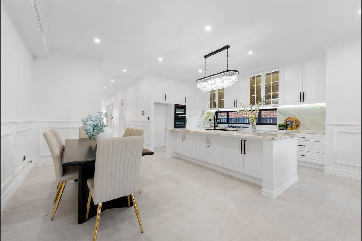 This stunning brand-new home offers high-end finishes and spacious living in a sought-after location. Designed with elegant French provincial style, it features vaulted ceilings, crystal chandeliers, ducted air-conditioning, and premium flooring throughout.