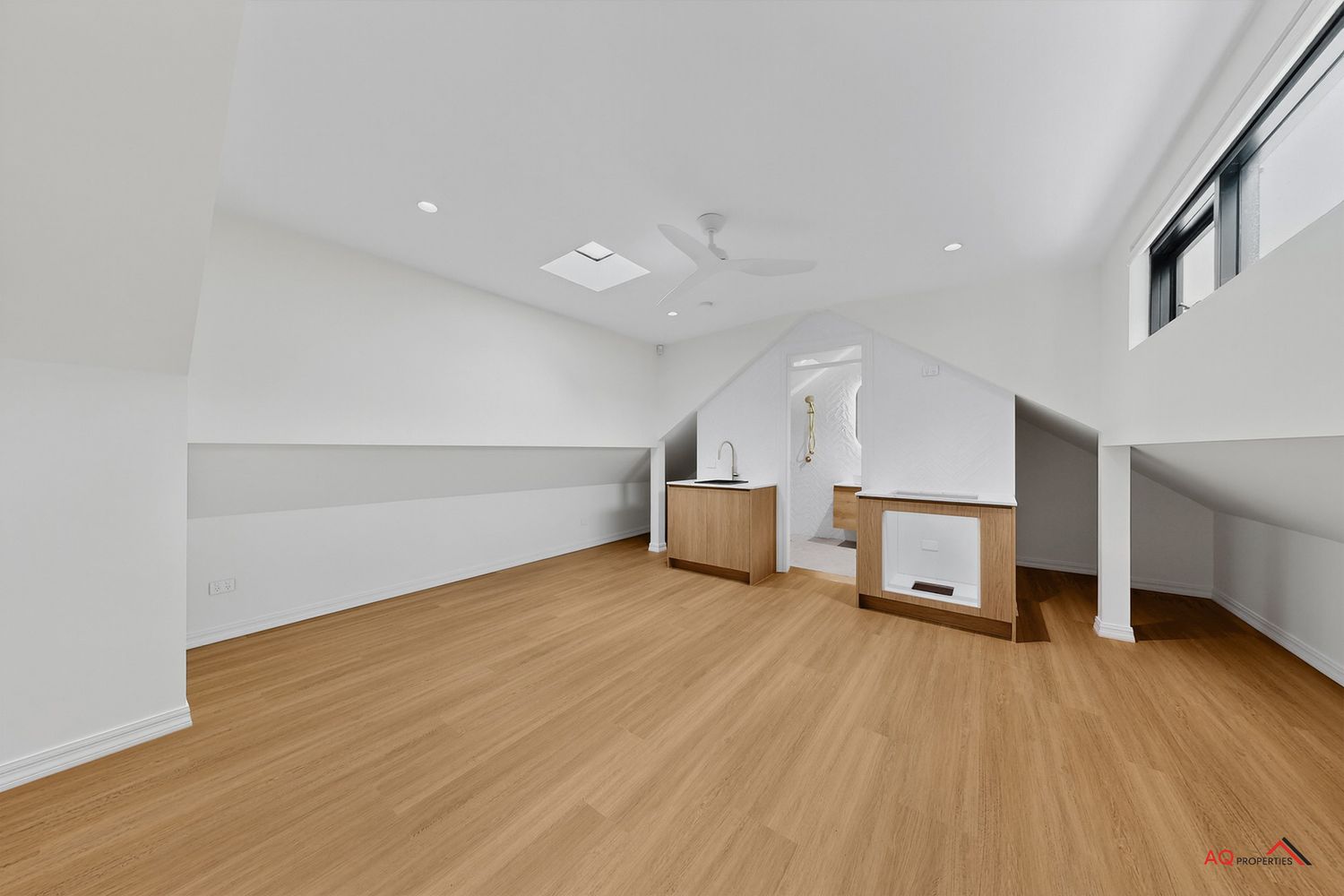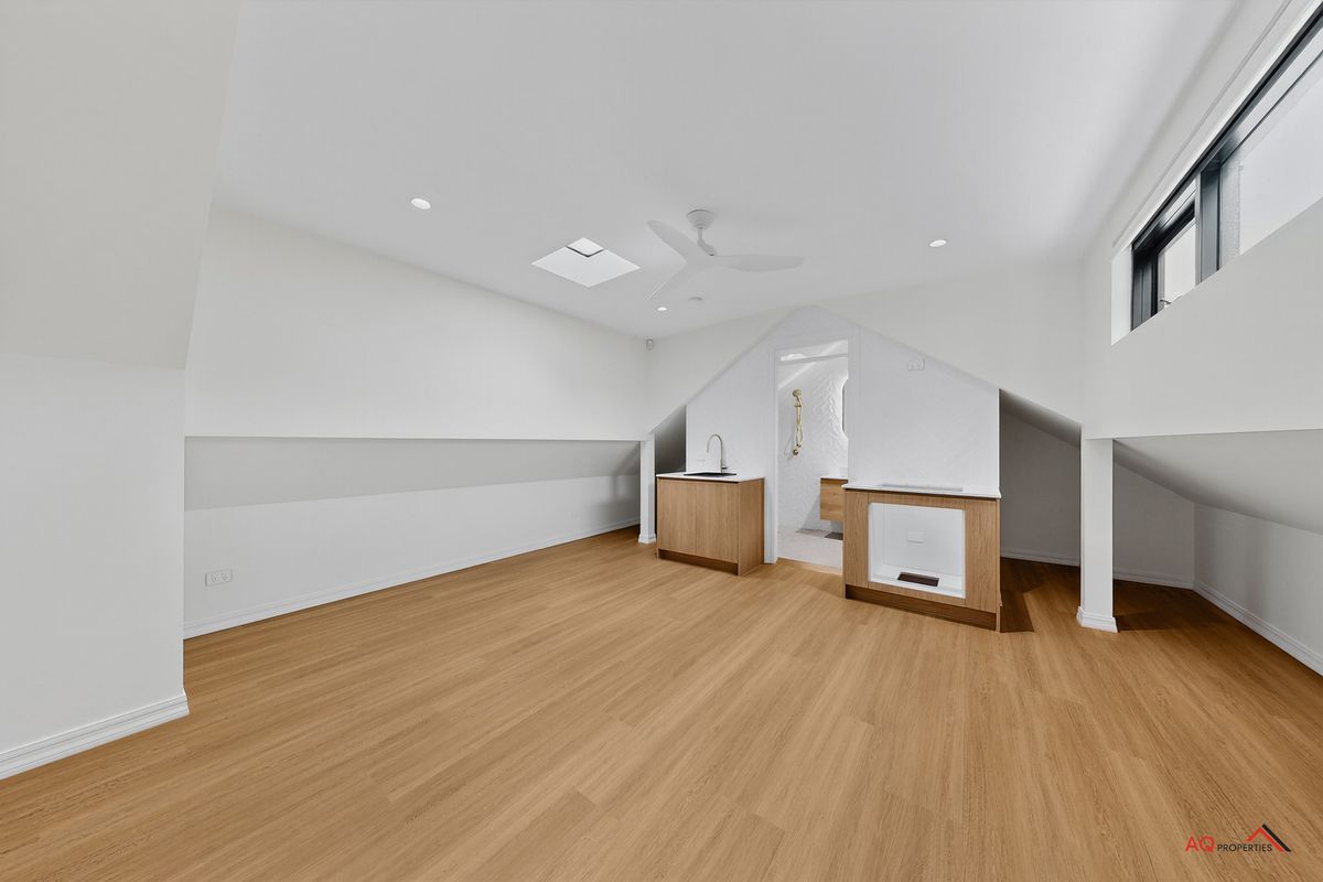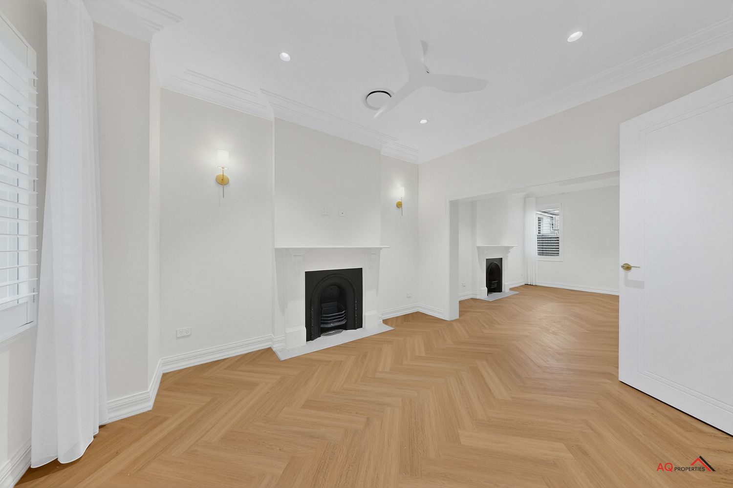 - Polished herringbone timber floors, soaring ceilings, and abundant natural light