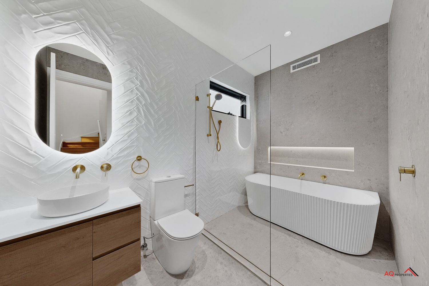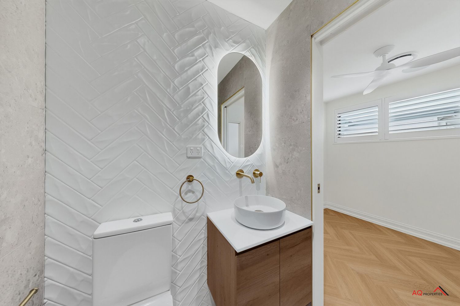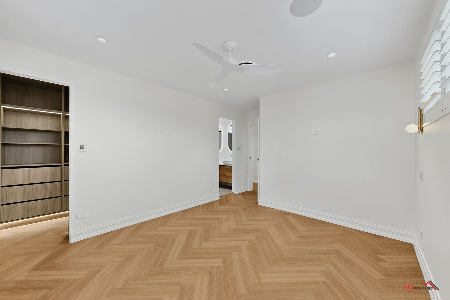 - Polished herringbone timber floors, soaring ceilings, and abundant natural light