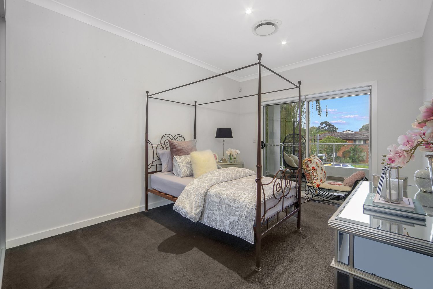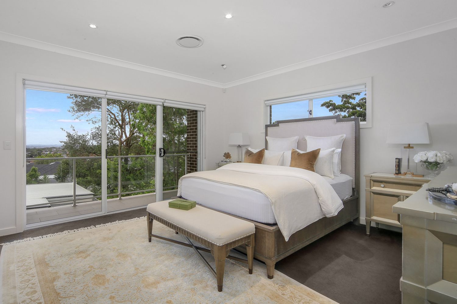 - Four bedrooms, all with built-in wardrobes, two with balcony access and a master with a walk-in closet, en-suite and private balcony
