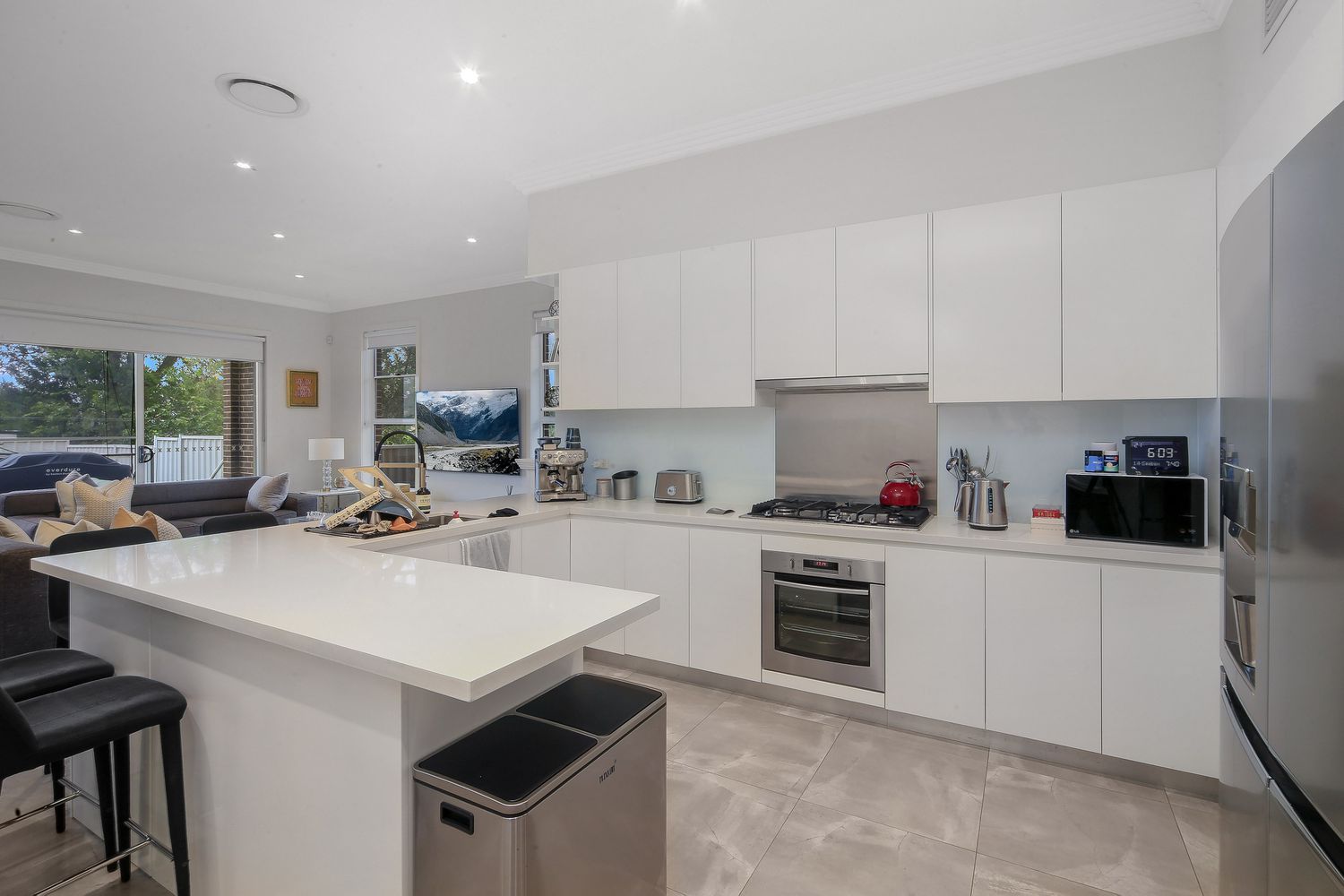 - Modern kitchen with 40mm stone bench-tops, breakfast bar, quality appliances and plenty of pantry space